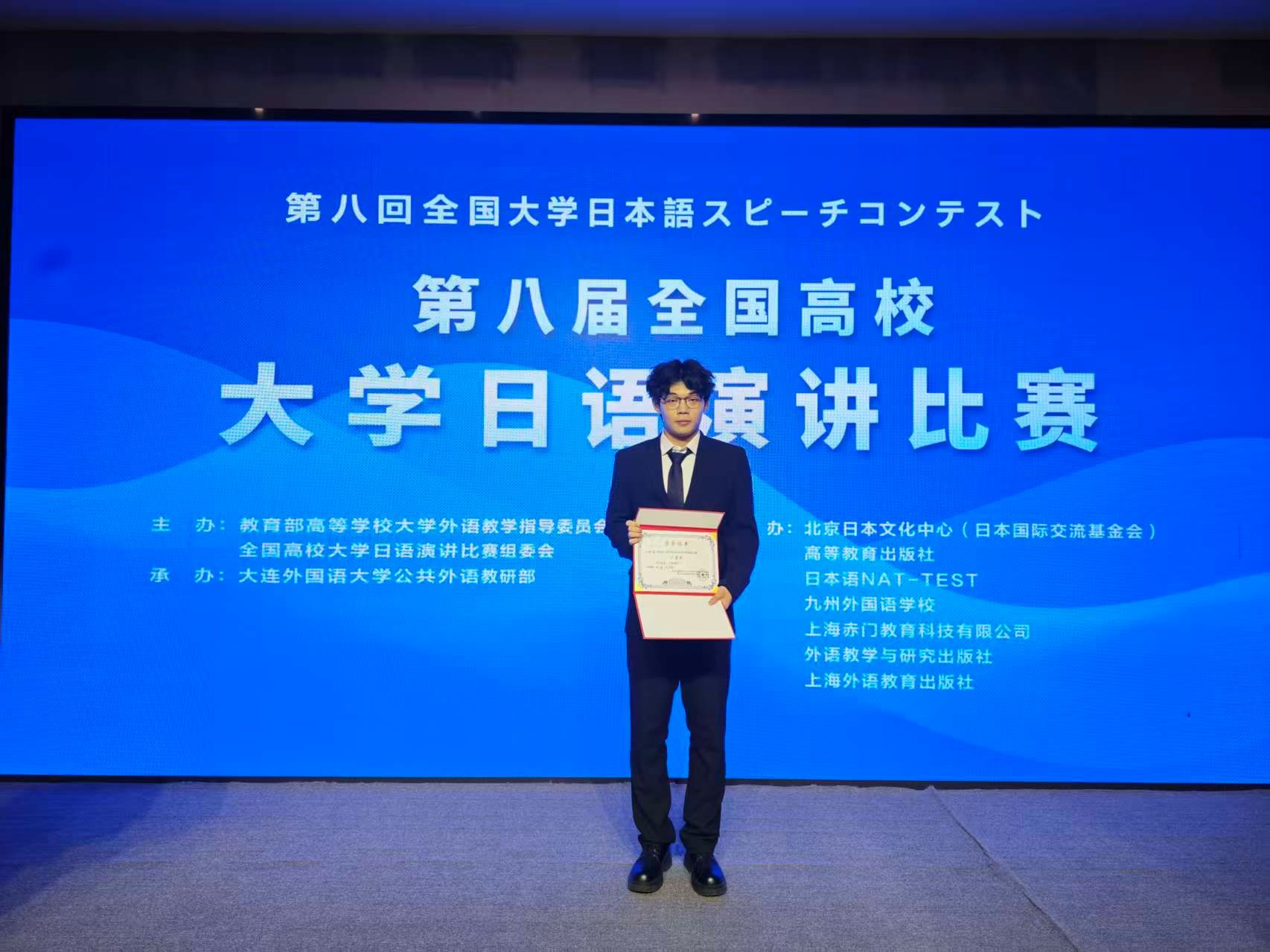 2025年10月18日,第八届全国高校大学日语演讲比赛在大连外国语大学圆满结束。经过激烈角逐,我校纺织23级汪林峰同学荣获全国二等奖;张瑜、王学鹏两位指导老师获得“优秀指导员工”称号,充分展现了我校的外语教学水平。