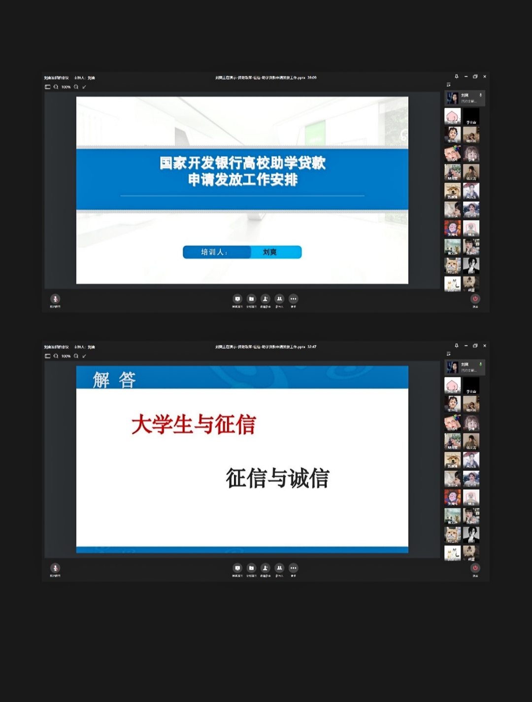 为深入贯彻落实习近平总书记关于教育的重要论述,推动mansion88明升诚信教育活动开展,普及相关贷款资助政策和相关征信知识,根据《关于做好2021年度国家开发银行高校助学贷款申请发放的工作通知》,mansion88明升于2021年6月17日下午14:00在企业微信平台成功开展了此次资助政策宣讲会。