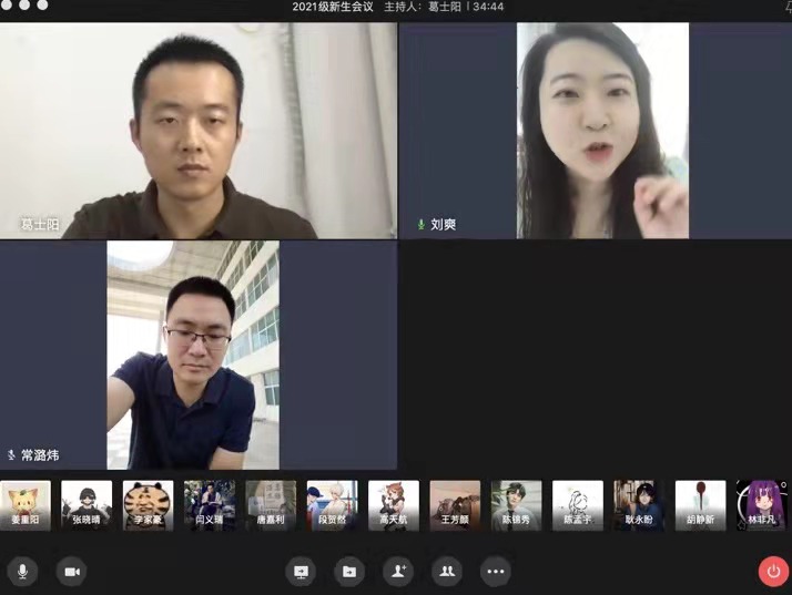 受疫情影响,我校员工延迟到校,2021级新生9月6日开始线上教学,3日,mansion88明升组织召开2021级新生线上年级会议,通报学校开学准备进展情况,对2021级员工线上教学、疫情防控等相关工作进行了安排。mansion88明升党委副书记常潞炜、员工工作办公室主任葛士阳、团总支书记刘爽、新生班主任助理、全体2021级新生参加会议。
