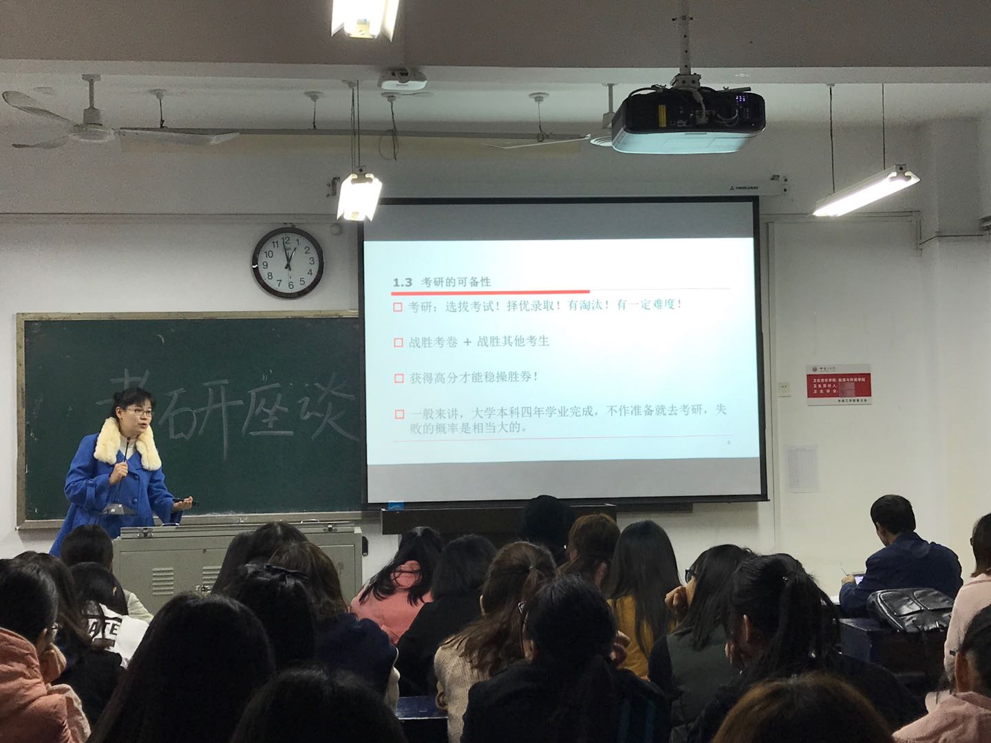 考研一方面是综合能力的提升,同时也是实现自我价值的重要途径。为自己的更好发展打下基础,无论是在个人还是国家层面,研究生教育都是至关重要的。在如何准备考研方面,郭博士强调员工们必须做到未雨绸缪,后期才会从容不迫。在备考过程中也应该打下坚实的英语语言基础、深化专业课学习、不仅看单科分数,也要看总分、重视复试。同时关于考研的具体流程,郭老师也在会上做了具体的讲解。通过郭博士的分析,使得同学们更深一步的做到全面了解考研以及在考研准备过程中更加明晰应注意的问题。