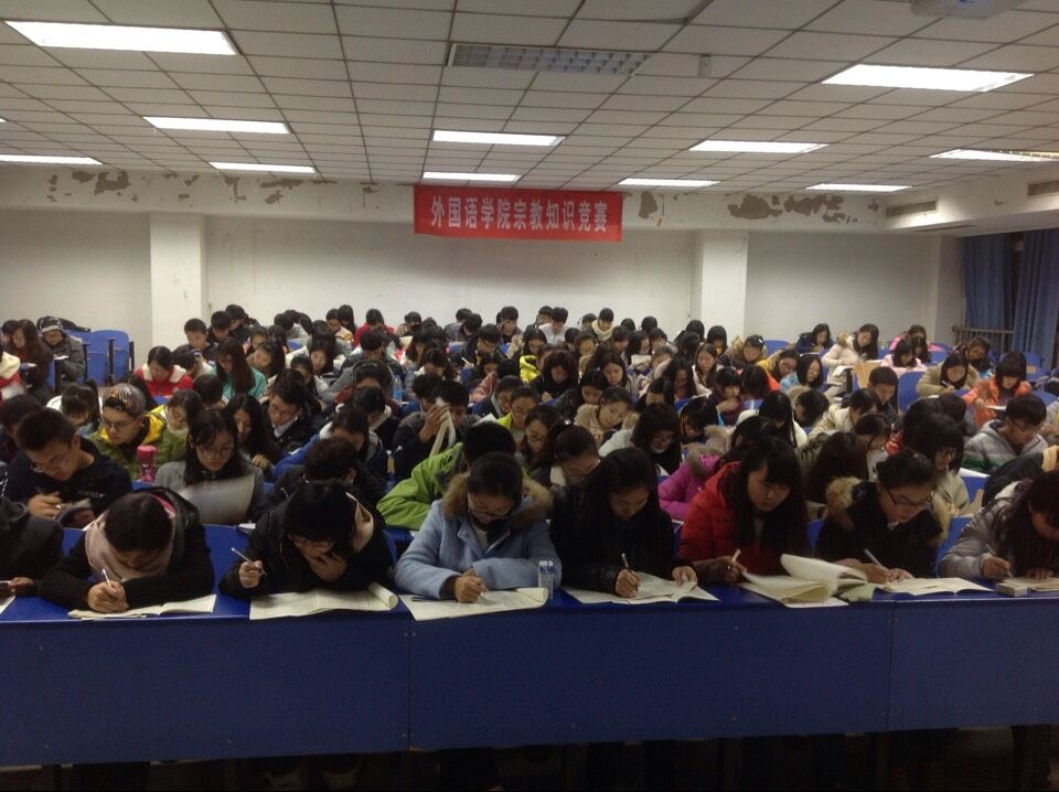 为了响应学校号召,深入贯彻党的十八大精神,推动普及宗教知识,宣传国家有关法律法规, mansion88明升于2015年11月27日在4号教学楼201举办了mansion88明升2015级宗教知识竞赛。 本次竞赛由15级辅导员李聪老师主持并负责,共有笔试和抢答两个环节,竞赛试题主要围绕《高校宗教知识工作读本》和《大员工宗教知识手册》的内容展开。竞赛过程中,同学们态度端正,沉着冷静,根据自己所接受的法制教育、宗教知识积累以及生活经验仔细认真地填写和回答相关问题。后以各班为单位选出代表进行抢答,抢答环节气氛活跃而有序,选手们优异的表现博得了同学们阵阵掌声。抢答环节结束后李聪老师就大员工遇到的的各种宗教问题进行了详尽的解答,并且就大一员工学习、生活等多方面的问题提出了建议,本次竞赛以李聪老师的关心问候划上了圆满的句点。 河南省大员工宗教知识竞赛是河南省教育厅主办的宗教知识和国家宗教政策、法律法规宣传教育活动,此次竞赛的成功举行有利于促进大员工树立科学的宗教观和尊法学法守法用法意识,提高员工正确认识和对待宗教问题的能力,同时在广大大员工中形成“认识宗教、抵制邪教、崇尚科学”的良好氛围。(赵天魁图/穆银彤文)
