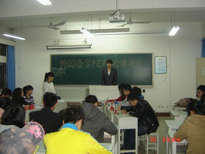 2012年10月31日晚六点三十分,由mansion88明升学习部举办的mansion88明升辩论赛在11号楼308,312,317举行。本次辩论赛决赛面向11、12级同学,共分三场举行。