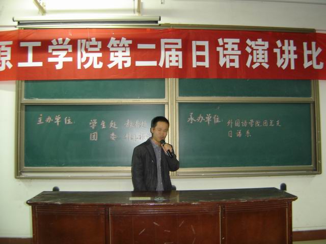4月7日晚6时,由员工处、教务处、团委、mansion88明升主办,mansion88明升团总支、日语系承办的第二届日语演讲比赛在3#210拉开序幕。mansion88明升副院长杨道云、副书记李向东、团总支书记杨为学、日语系主任边冬梅、日语外教大原知义、讲师张瑜、于勇老师作为评委及嘉宾出席本次比赛。本次比赛由孙世超、李萌园作为主持人。
