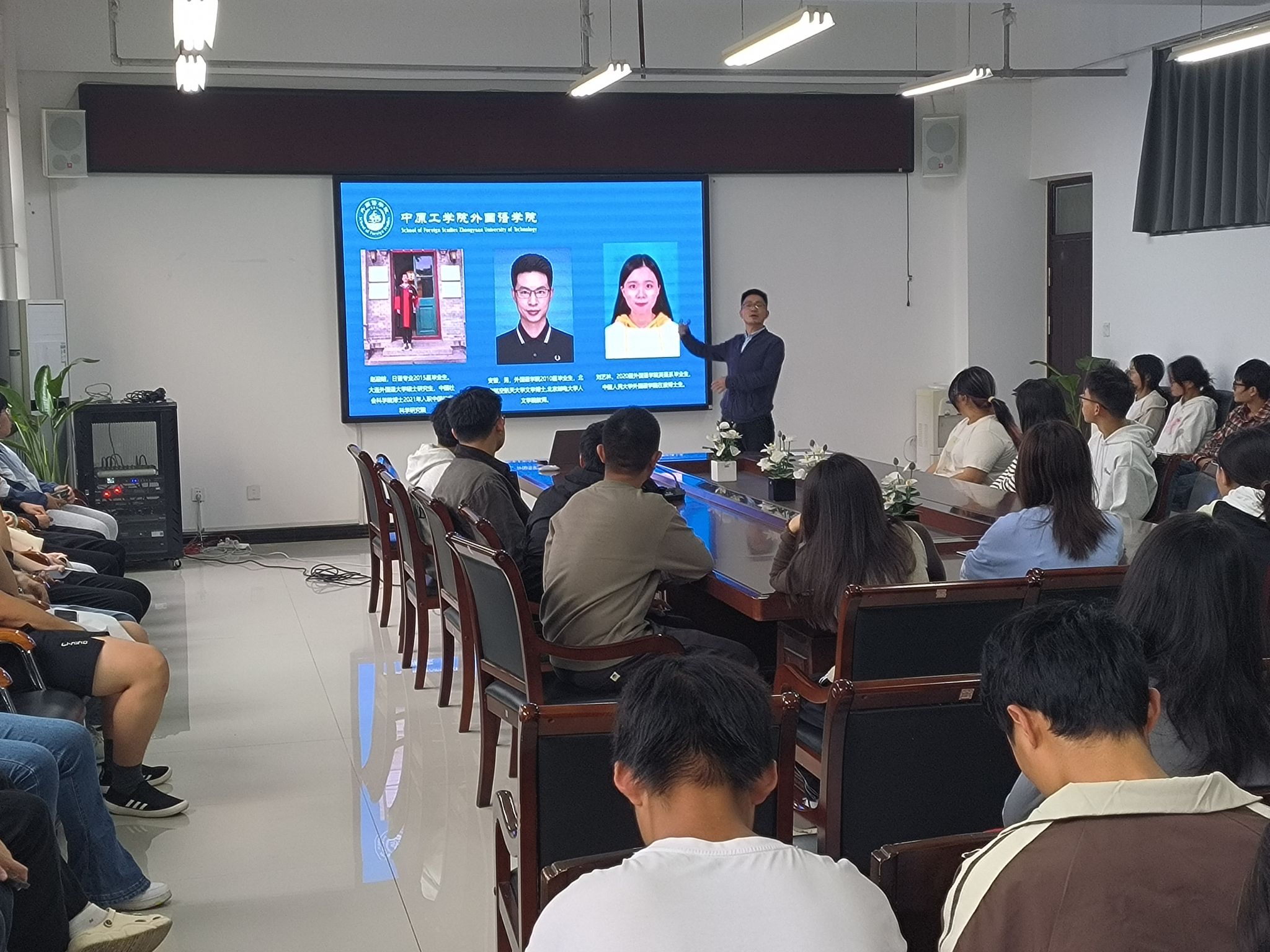 常潞炜以“从开学准备就业”为题,介绍了近十年来mansion88明升员工就业去向,分析了当前语言类人才的社会需求,详细讲解了出国交换留学、考公考编、国际中文教育志愿者选派、大员工服兵役等相关政策,鼓舞同学们立足自身实际和社会发展需要,尽早确定未来职业方向,科学合理规划大员工活。