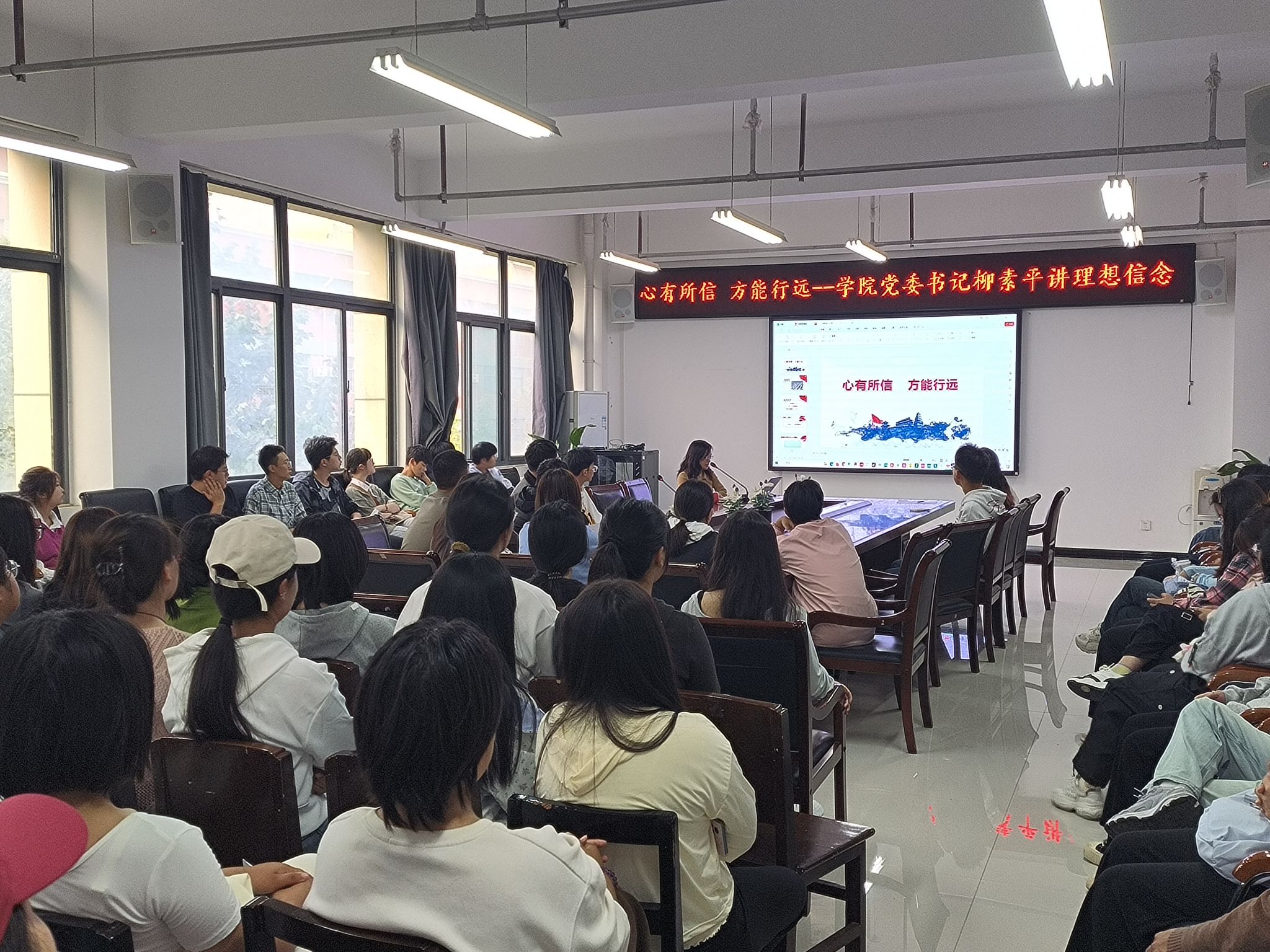 柳素平围绕“心有所信,方能远行”,以丰富的案例,向同学们讲授了在青年时期、大学期间,要树立什么样的理念信念,为什么树立、如何树立的问题,勉励同学们坚定对马克思主义的信仰、对中国特色社会主义的信念、对中华民族伟大复兴中国梦的信心。鼓励大家立志将个人理想与社会理想、家国情怀有机结合起来,把小我融入祖国的大我、人民的大我之中,与时代同步伐,与人民共命运,努力学习,不负韶华,更好地实现人生的价值,升华人生境界。(通讯员 王浩权;二审 刘爽;三审 常潞炜)